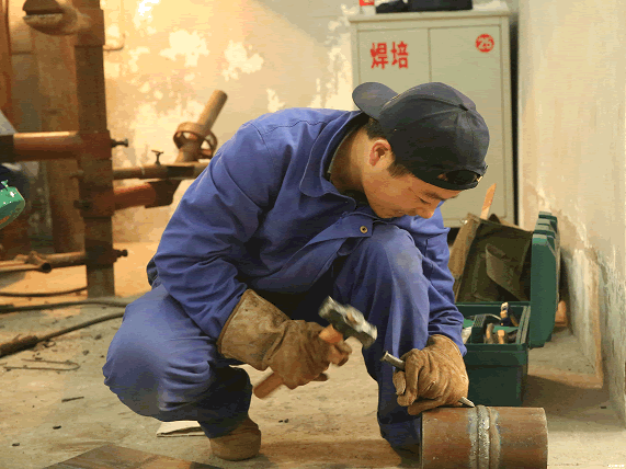 一身藍色粗布工作服,手持電焊工具,穿梭在各個電焊現(xiàn)場,或親手上活,或指點同志,或手把手示范教學,42歲的袁培東是整個九冶建設有限公司人心中的技術(shù)能手。