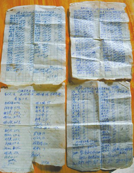 說(shuō)是賬本,不過(guò)是4張油膩泛黃的紙,上面密密麻麻寫(xiě)滿了姓名、金額。其中,最多的一張上有51個(gè)人,金額共是8252.09元。
